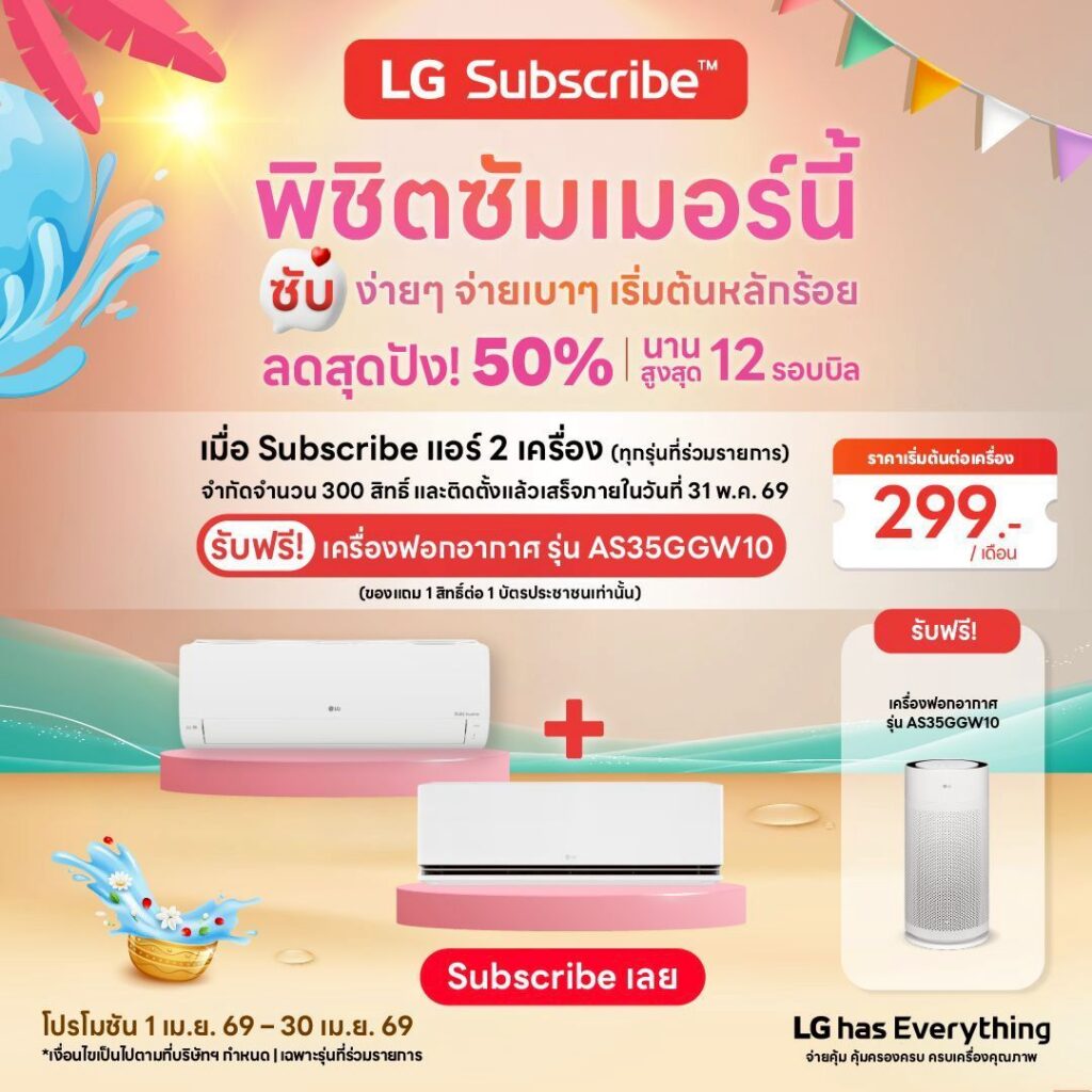 LG Subscribe เครื่องฟอกอากาศ LG PuriCare AeroHit รุ่น AS35GGW10